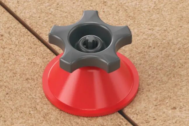 3. На стойку-основание наденьте прижимную шайбу и затяните гайку с требуемым для фиксации нивелированной плитки усилием. Система LITOLEVEL позволяет очень точно выравнивать и надёжно фиксировать плитку в нужном положении до высыхания клеевого состава без сдвигов и перекосов.