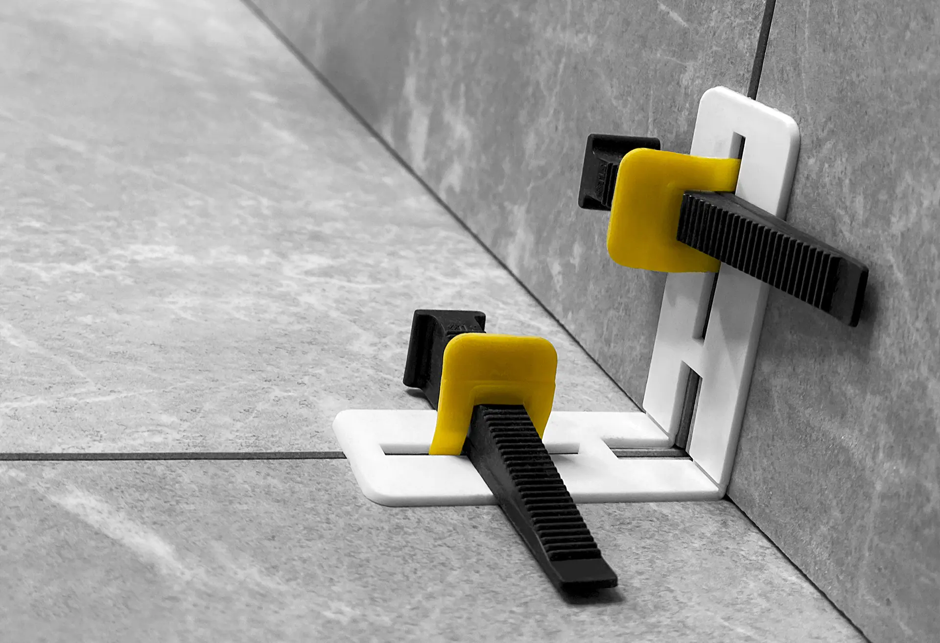• Для фиксации плитки -зажмите клин в зажим системы СВП. Клин многоразовый, его можно использовать на следующей захватке.