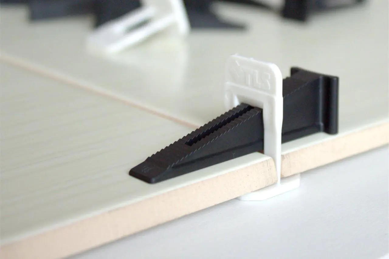 СВП состоит из зажима и клина. Зажим – одноразовая часть системы. После укладки плитки и полного высыхания клеевого состава, его "сбивают" и нижнее основание остаётся под плиткой.