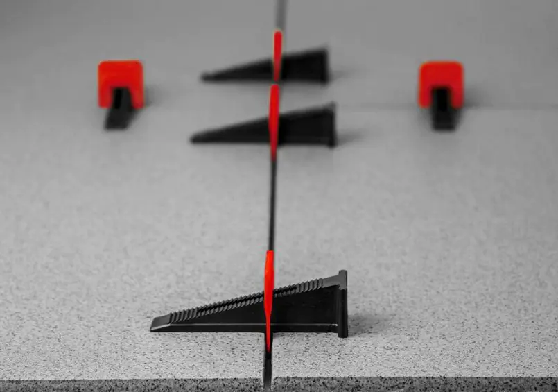 СВП состоит из зажима и клина. Зажим – одноразовая часть системы. После укладки плитки и полного высыхания клеевого состава, его "сбивают" и нижнее основание остаётся под плиткой.