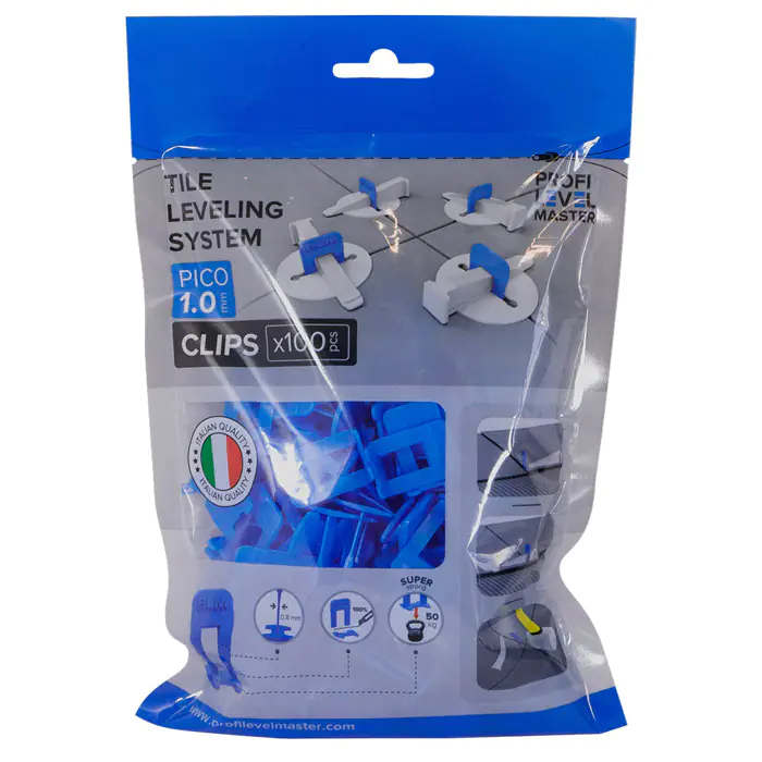 П-образный зажим PROFI LEVEL MASTER PICO 1 мм – является частью новейшей итальянской системы выравнивания плитки. Цвет синий. Упаковка 100 шт.