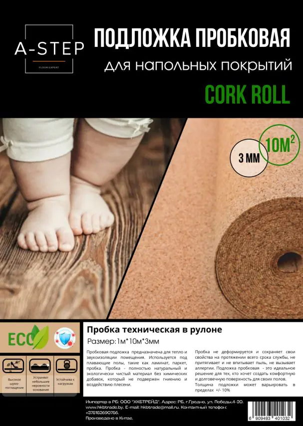 Подложка пробковая – это идеальное решение для тех, кто хочет создать комфортную и долговечную поверхность для своих полов. Толщина подложки может варьировать в пределах +/- 10%.