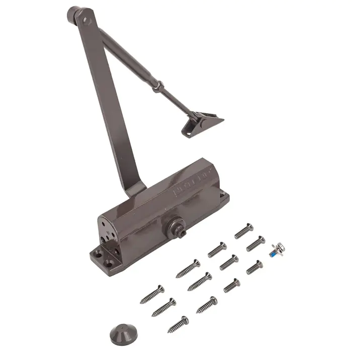 Доводчик дверной механогидравлический, накладной, верхнего расположения, для левых и правых дверей, двухскоростной. Устанавливается на распашные двери с упором, рекомендуемая ширина дверного полотна до 1250 мм, вес дверного полотна до 120 кг. Гарантия 2 года с даты продажи.