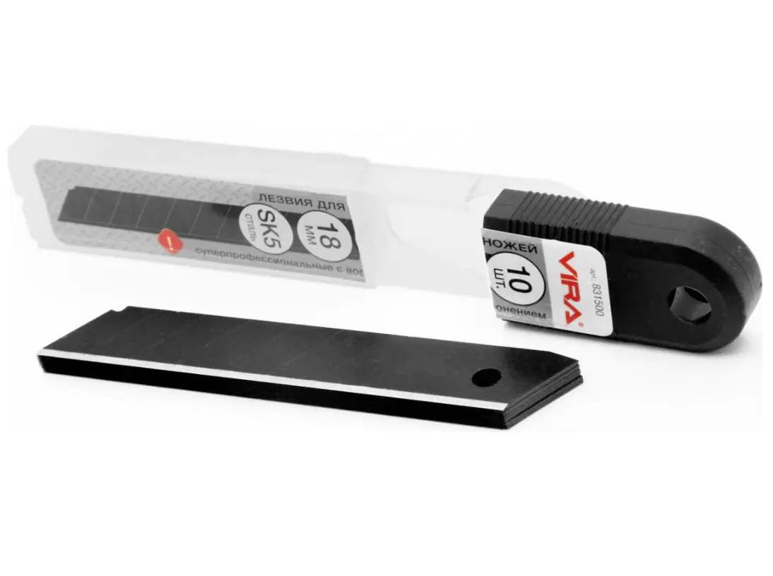 Сегментные лезвия для ножей VIRA с воронением 18 мм разработаны для офисных ножей и применяется при разрезании бумаги, картона, тонкого пластика. Сегментация позволяет своевременно удалять затупившиеся элементы. Лезвие оснащено отверстием для крепления к рукоятке ножа. Выполнены из стали SK5. В упаковке 10 штук.