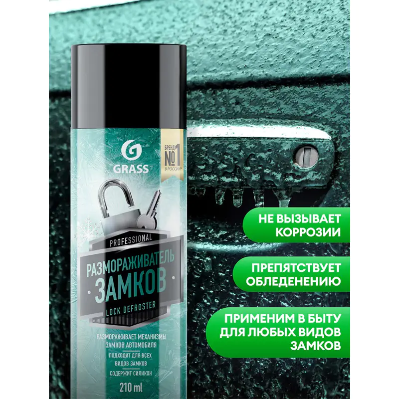 Размораживатель замков c силиконовой смазкой от Grass – профессиональное средство быстро и эффективно убирает лед и вытесняет влагу из замковых механизмов за счет силиконовой основы. Защищает от повторного замерзания и продлевает срок службы замка благодаря смазывающему эффекту. Удобная съемная трубочка для распыления, позволит нанести состав как на замочную скважину, так и впрыснуть состав сразу вглубь механизма, что увеличивает его быстродействие.