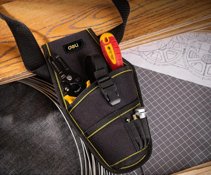 Поясная сумка-кобура монтажника с ремнем DELI EDL430004 260x150 мм предназначена для хранения и переноски инструмента, который необходим при проведении строительных работ и поможет иметь весь необходимый инструмент под рукой, не отвлекаясь на его поиск.
