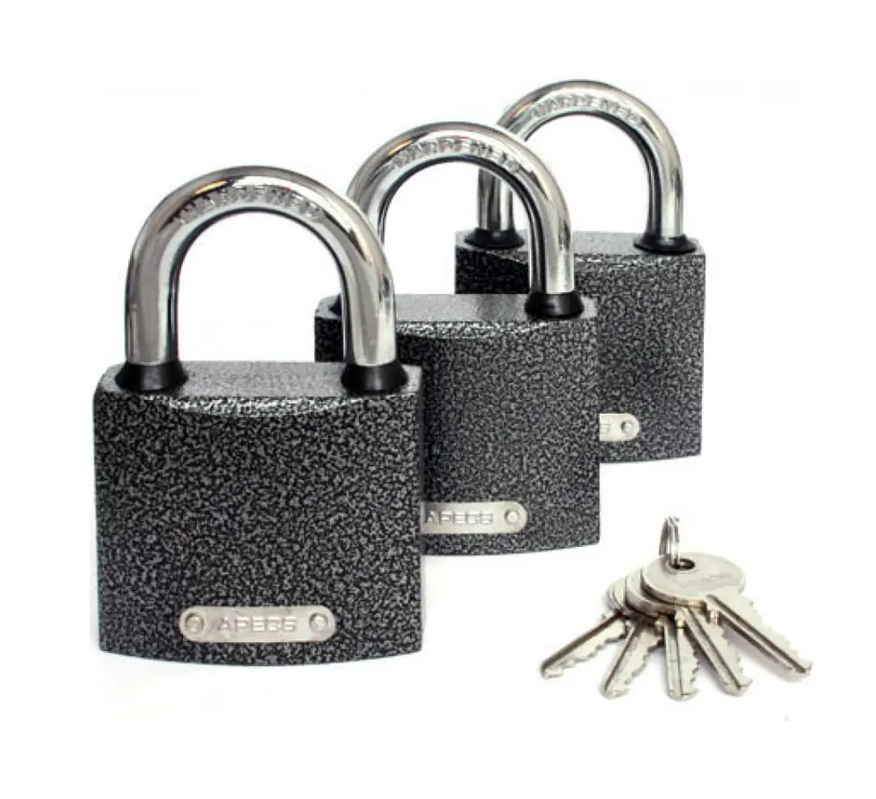 Замки навесные Apecs PD-01-63 отлично подходят для использования на дачных участках. Выполнены из чугуна. В замках используются полноразмерный латунный цилиндровый механизм и пружины из нержавеющей стали. Фиксация дужки с двух сторон обеспечивает надежное запирание замка, которое осуществляется нажатием на дужку без использования ключа. Резиновые кольца предотвращают попадание влаги внутрь корпуса.