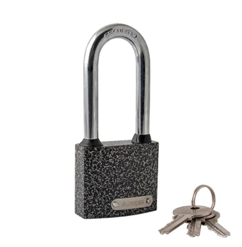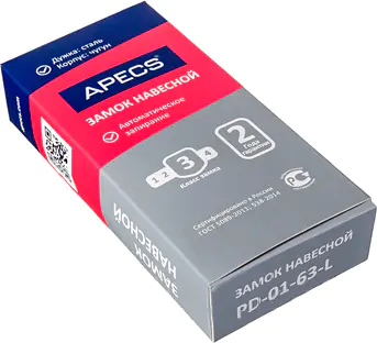 Apecs PD-01-63-L - высококачественный навесной замок, изготовленный из чугуна, с длинной дужкой. В замках используются полноразмерный латунный цилиндровый механизм и пружины из нержавеющей стали. Фиксация дужки с двух сторон обеспечивает надежное запирание замка, которое осуществляется нажатием на дужку без использования ключа. Резиновые кольца предотвращают попадание влаги внутрь корпуса.
