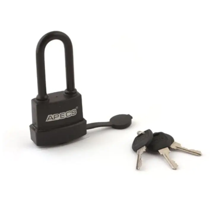 Apecs PDR-50-55-L - высококачественный навесной замок из чугуна в пластиковом чехле с длинной дужкой. Пластиковый чехол выполнен из морозоустойчивого материала, не подверженного растрескиванию при температуре до (-40) градусов. Имеет заглушку на цилиндр из мягкой резины. Используется полноразмерный латунный цилиндровый механизм и пружины из нержавеющей стали. Фиксация дужки с двух сторон обеспечивает надежное запирание замка, которое осуществляется нажатием на дужку без использования ключа.