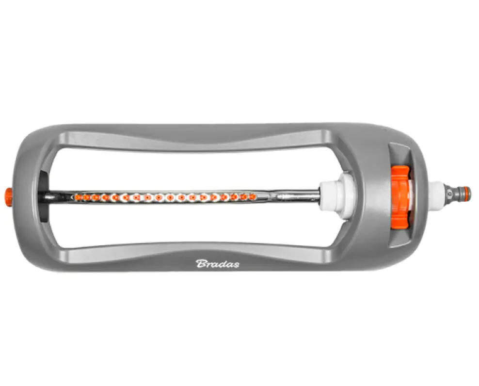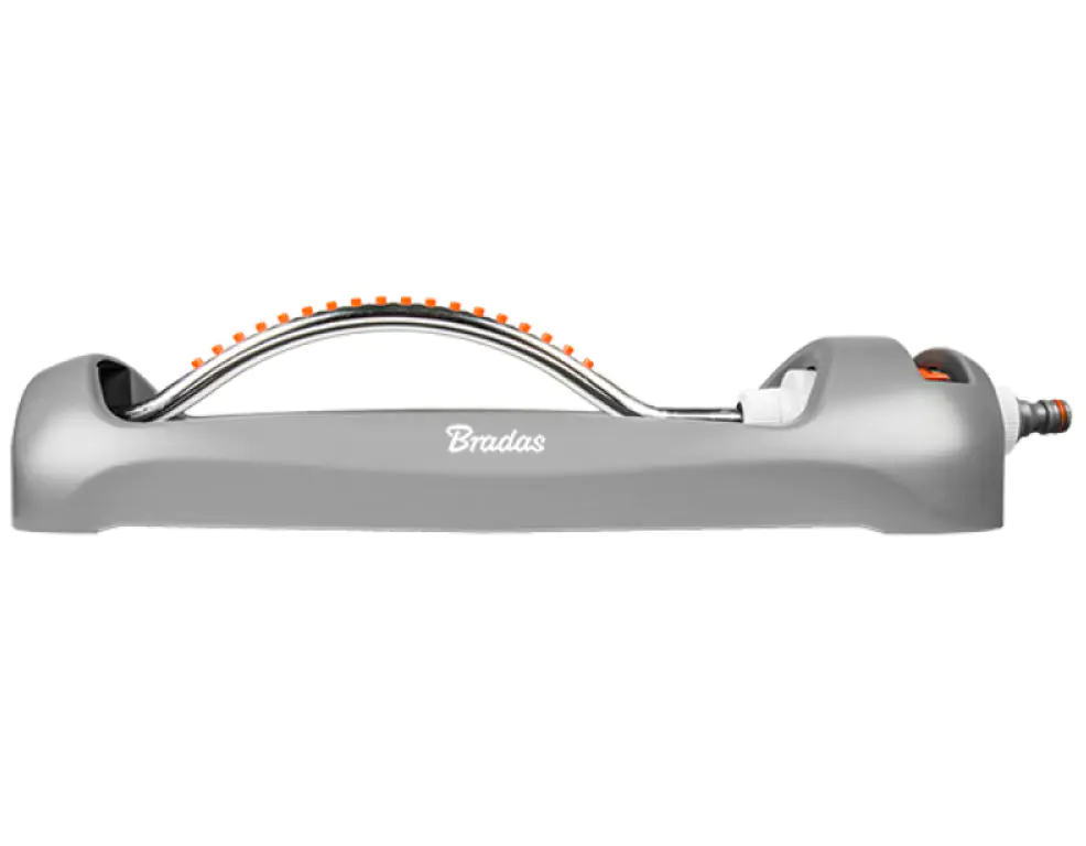 Дождеватель White Line от Bradas WL-Z24 на пластиковой основе – оптимальный вариант для полива участков прямоугольной формы площадью до 334 м2. 18 пластиковых форсунок размещенных на алюминиевой дуге создают водяной веер, качающийся из стороны в сторону, что позволяет поливать газон и низкорослые растения деликатно и равномерно. Угол колебания дуги, то есть расстояние полива регулируется удобными ползунками. В комплект входит игла для прочистки форсунок. Шланг подключается к дождевателю с помощью стандартного коннектора.
