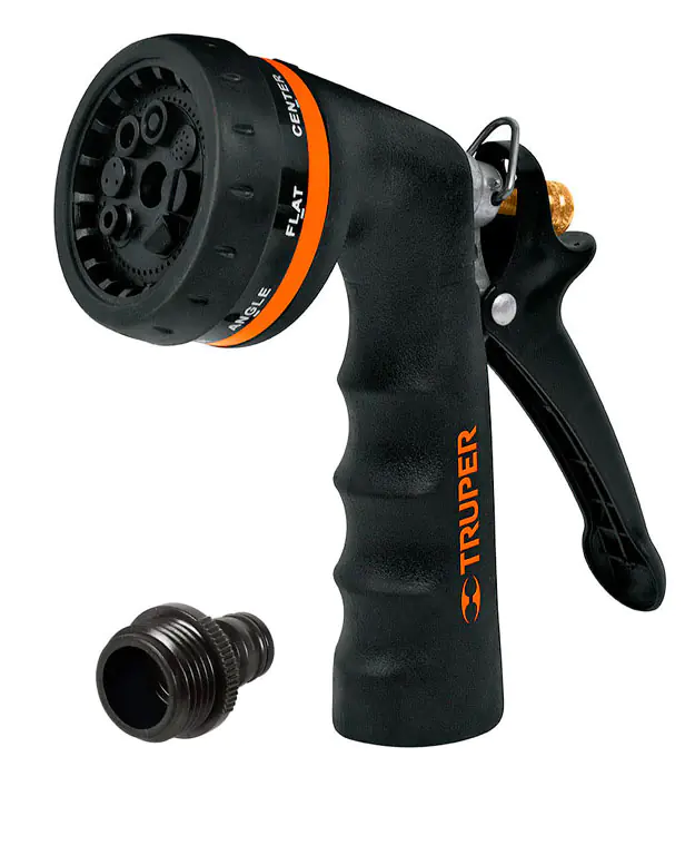 Пистолет-распылитель 8-позиционный TRUPER PR-208 с коннектором под быстросъемную муфту, предназначен для садово-огородных работ. Имеет 8 режимов работы и клемму для непрерывного распыления. Эргономичный дизайн обеспечивает удобство оператора. Прорезиненная ручка обеспечивает надежный хват и контроль над процессом.