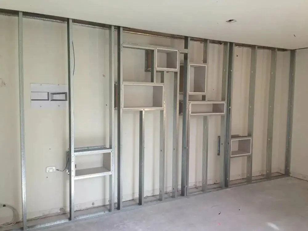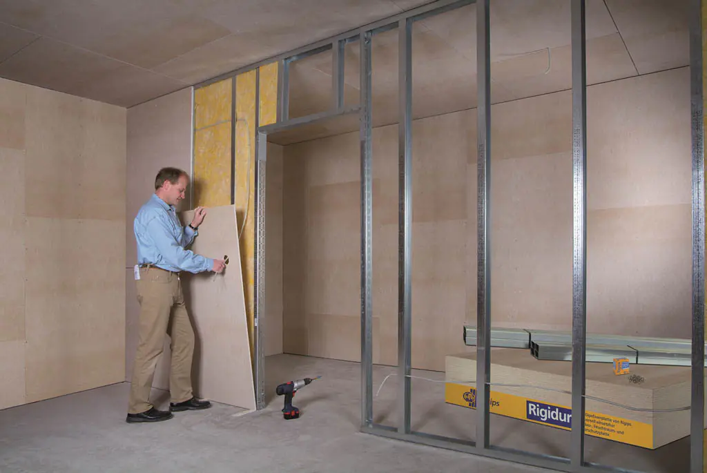 Он служит в качестве вертикальных стоек. Стойки создают жёсткость и прочность всей конструкции перегородки. Для этого распределяйте их равномерно, с интервалом 50-60 см. В местах повышенных нагрузок (вблизи оконных и дверных проёмов, на углах и перепадах плоскостей стен) крепление может быть более частым.