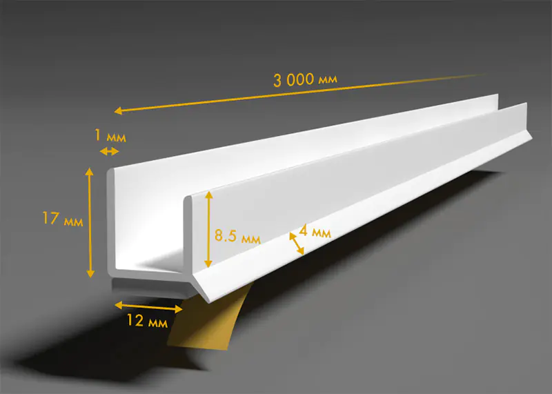 Окантовочный профиль также оснащен клейкой лентой, что облегчает процесс монтажа, благодаря моментальной стыковке и надежной адгезии.
