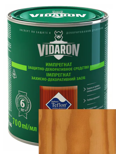 Vidaron импрегнат – современная пропитка, предназначенная для защиты сырой древесины и древесных материалов снаружи и внутри помещений. Придает пропитанным элементам элегантное матовое покрытие, подчеркивающее природный рисунок слоев древесины. Предоставляет 6-летнюю гарантию эффективной защиты. Средний расход около 11 м²/л.
