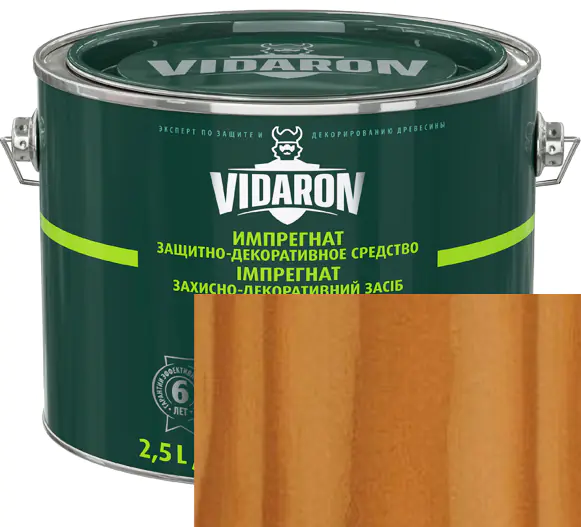 Vidaron импрегнат – современная пропитка, предназначенная для защиты сырой древесины и древесных материалов снаружи и внутри помещений. Придает пропитанным элементам элегантное матовое покрытие, подчеркивающее природный рисунок слоев древесины. Предоставляет 6-летнюю гарантию эффективной защиты. Средний расход около 11 м²/л.