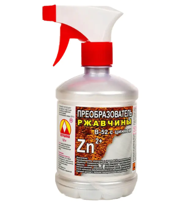 Уничтожитель ржавчины В 52 "Вершина" производится в форме геля, благодаря чему его очень удобно использовать, так как средство не растекается по поверхности. Расход средства: одной банки (620 г) хватает на поверхность площадью 5 квадратных метров.