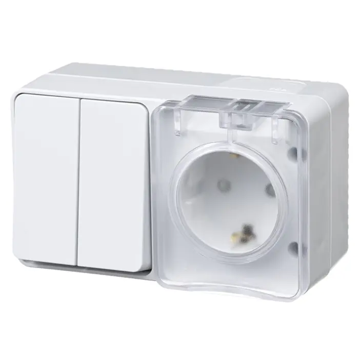 Блок для открытого монтажа из розетки с заземлением со шторками (16А, 250В) и 2-клавишного выключателя (10А) Systeme Electric AtlasDesign ATN540174 подходит для тех мест, где требуется повышенная защита от влаги и пыли. Универсальный белый цвет гармонично впишется в любую обстановку.