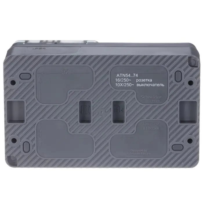 Блок для открытого монтажа из розетки с заземлением со шторками (16А, 250В) и 2-клавишного выключателя (10А) Systeme Electric AtlasDesign ATN540174 подходит для тех мест, где требуется повышенная защита от влаги и пыли. Цвет антрацит.