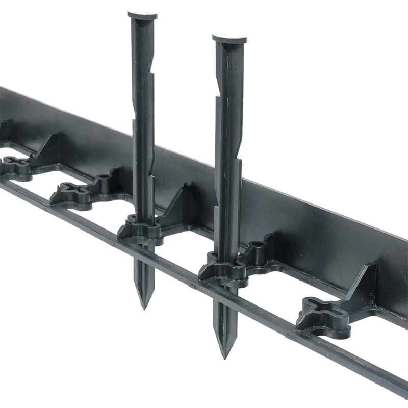 В одном метре борта используется от 2 до 7 гвоздей, в редких случаях до 10 штук на метр. Благодаря боковым вырезам надежно фиксируются в земле предотвращая их выталкивание при перепадах температуры. Благодаря эластичному материалу способен проходить мимо камней и корней.