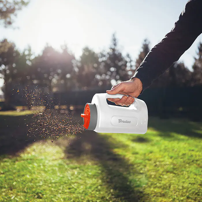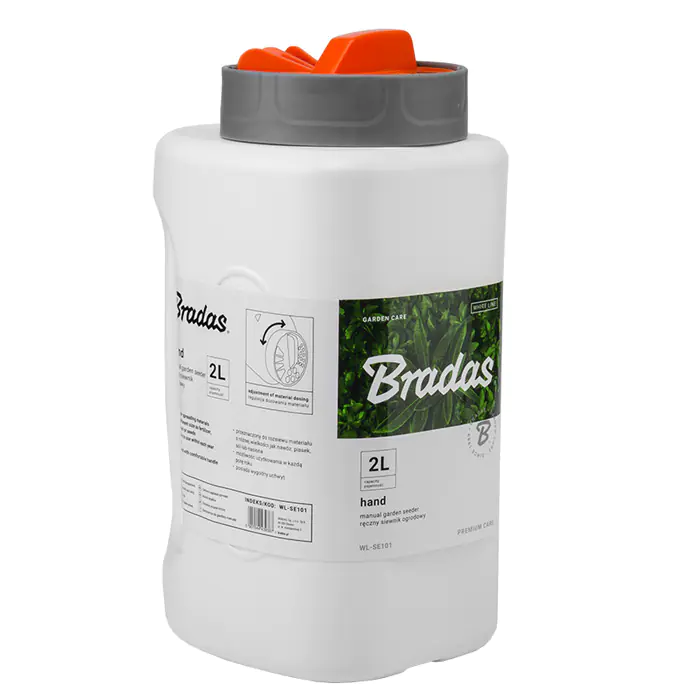 Разбрасыватель-сеялка ручная BRADAS предназначен для равномерного и точного посева семян или разбрасывания сыпучих материалов разного размера и калибра. Он имеет поворотную крышку с тремя датчиками. Можно использовать в любое время года. Имеет удобную ручку. Емкость 2 литра.