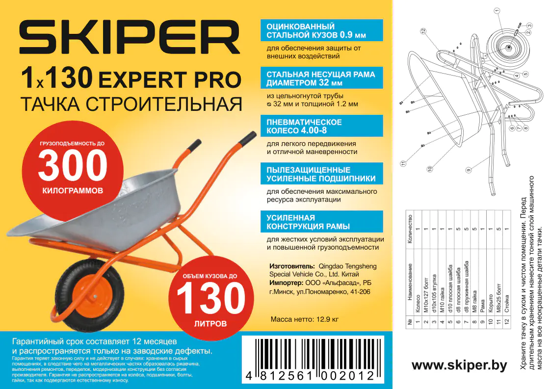 Преимущества тачки строительной Skiper Expert Pro 130: