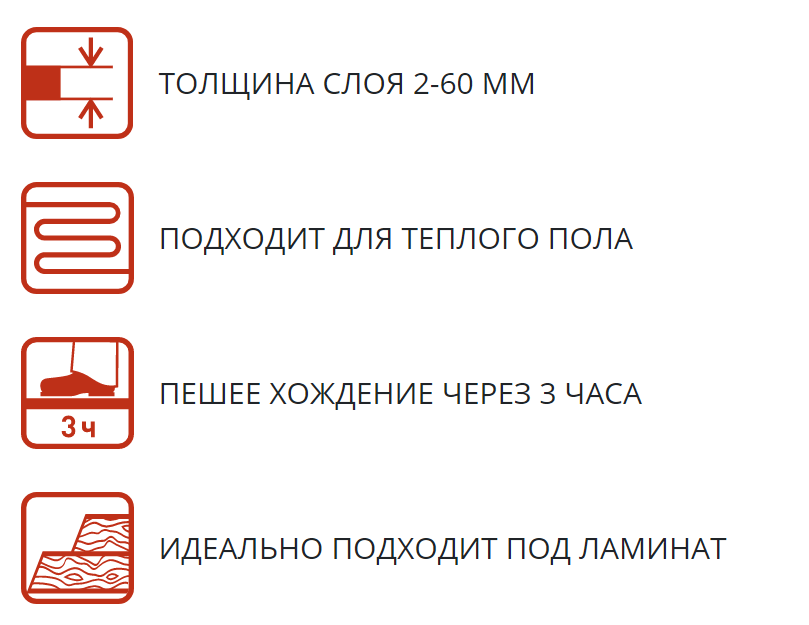 Во время выполнения работ и высыхания раствора поверхность следует предохранять от воздействия прямых солнечных лучей, перепадов температур, сквозняков. Температура окружающей среды и основания должна быть в диапазоне +5…+25°С. Пешее передвижение по поверхности разрешается не ранее чем через 3 часа. Дальнейшие работы рекомендуется проводить после полного высыхания самонивелира (не ранее чем через 1 сутки при температуре воздуха +20°С и относительной влажности воздуха 60%).