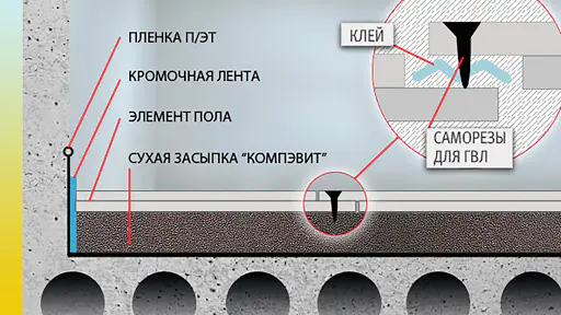 Сухие стяжки применяют при устройстве отапливаемых полов, в том числе по существующим деревянным полам.