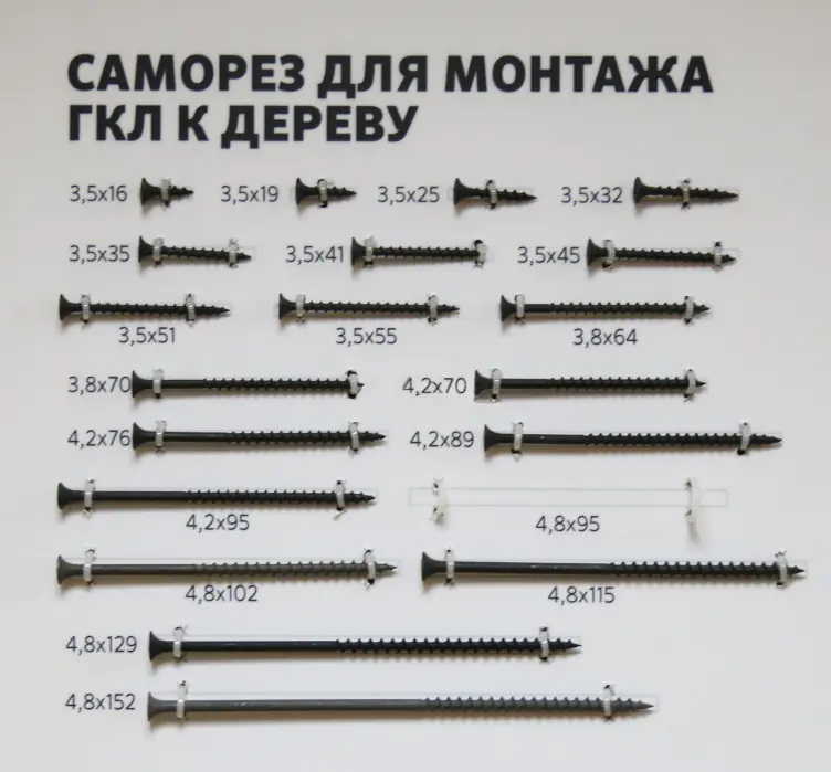 Данный саморез используется для крепления гипсокартона к деревянным основаниям. В пачке 500 шт. Цена за пачку.