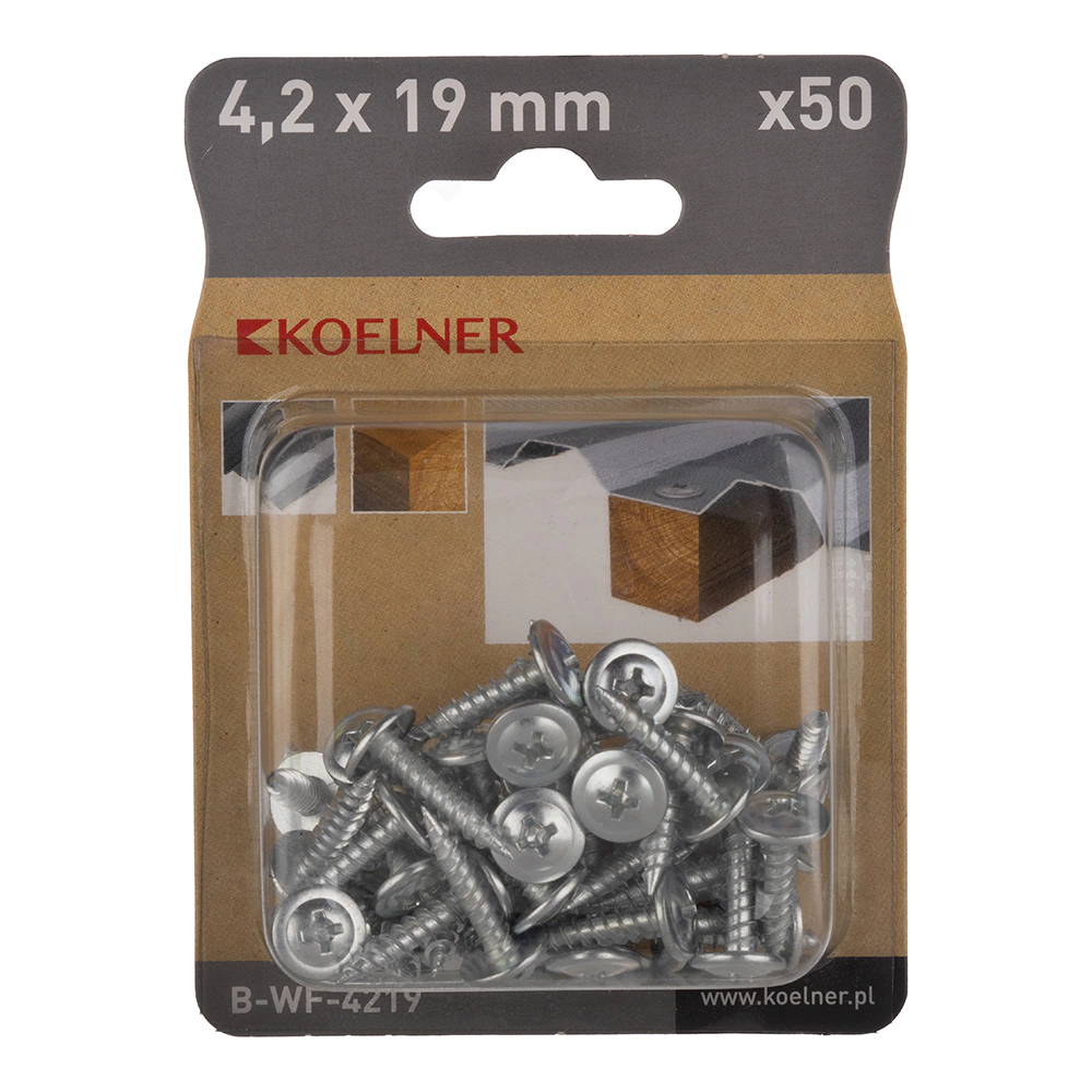 Саморез 4.2*19. Прессшайба. С его помощью металлические профили крепятся между собой. За счет широкой шляпки, так называемой пресс-шайбы, работать с саморезом удобней и соединение становится надежней. В упаковке 50 шт.