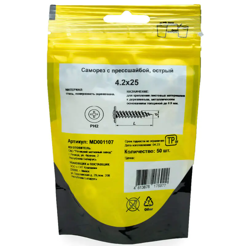Саморез с прессшайбой 4,2x25 (50 шт) острый предназначен для надежного крепления стальных и других листовых материалов к металлическим (до 0,9 мм) и деревянным конструкциям. Он обеспечивает прочное соединение и удобство монтажа.