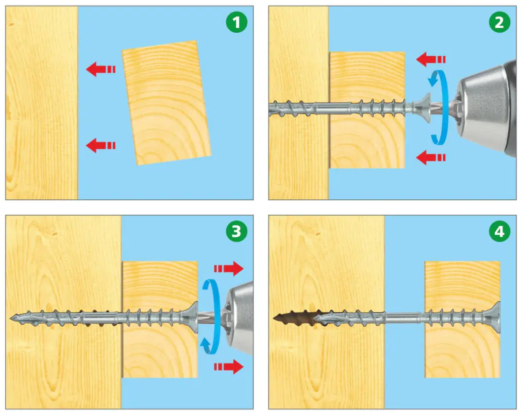 • Две резьбы в верхней и нижней части самореза. Регулирует расстояние между соединяемыми элементами для точной и надежной фиксации.