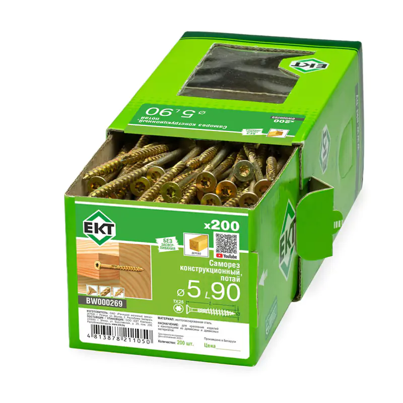 Саморез конструкционный 5х90 мм потай, желтый цинк широко используется в деревянном домостроении для скрепления несущих деревянных конструкций, каркасов, стропил, балок и других силовых опор. Не расщепляет древесину. Не требует предварительного засверливания. Возможность скрытого монтажа. В упаковке 200 штук.
