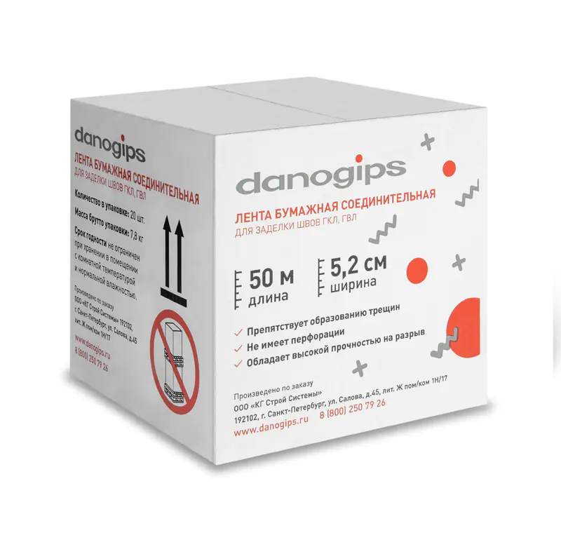 - Ленты Danogips производятся из первичного сырья (не переработанная бумага). Такие ленты имеют длинные волокна, которые делают её прочной к растяжению и разрыву.