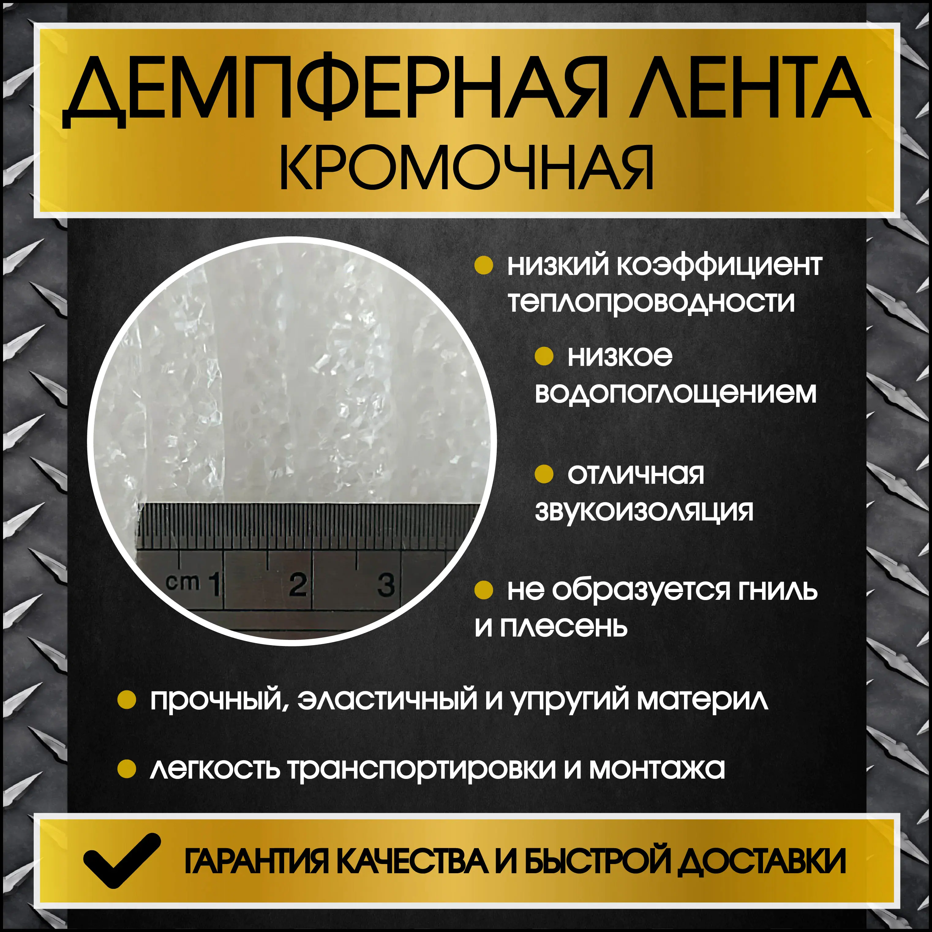 Демпферная лента - высокоэффективный тепло и шумоизоляционный материал из вспененного полиэтилена. Укладывается по кромке бетонной стяжки при обустройстве системы плавающего пола. Высота ленты 50 мм. Толщина 5 мм. В рулоне 25 м.п.