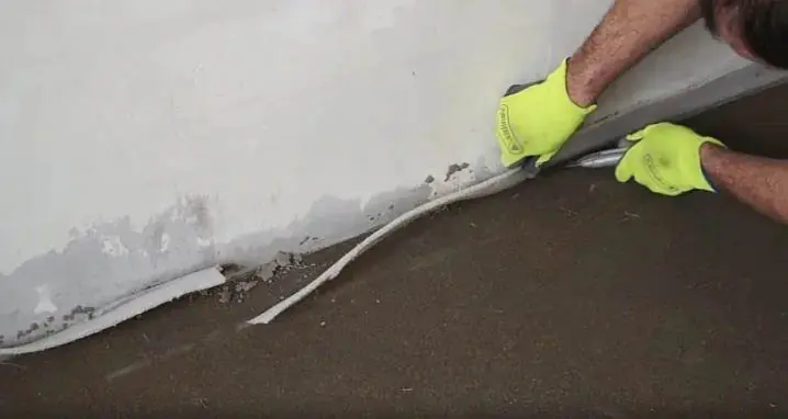 • Выступающая лента обрезается ножом, после высыхания стяжки.