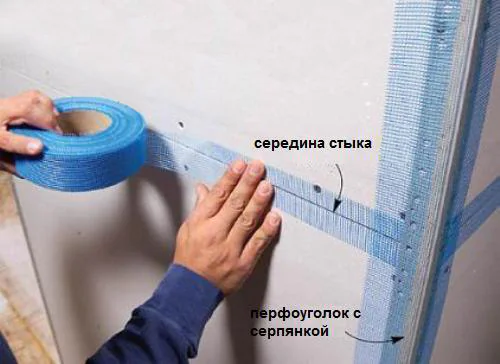 Заполнить шов шпаклёвкой с использованием армирующей стеклотканевой щелочестойкой ленты шириной 10 см. Смесь должна полностью заполнять шов. Армирующая лента приклеивается смесью к поверхности плиты, лишний клеевой состав убирается с ленты шпателем и заглаживается.