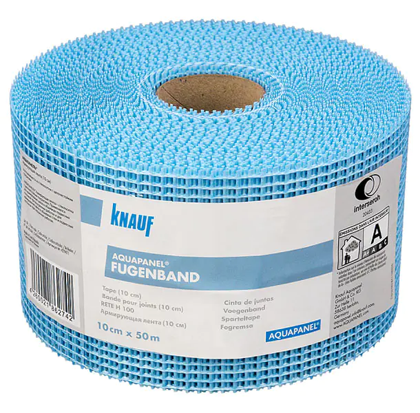 Армирующая стеклотканевая щелочестойкая лента Кнауф Аквапанель наружная шириной 10 см применяется для армирования швов (стыков плит) в сочетании со шпаклевочной смесью. Обеспечивает высокое качество готовой поверхности и соблюдение технологии КНАУФ при армировании стыков цементных плит АКВАПАНЕЛЬ. Расход около 2,1 м/м2.