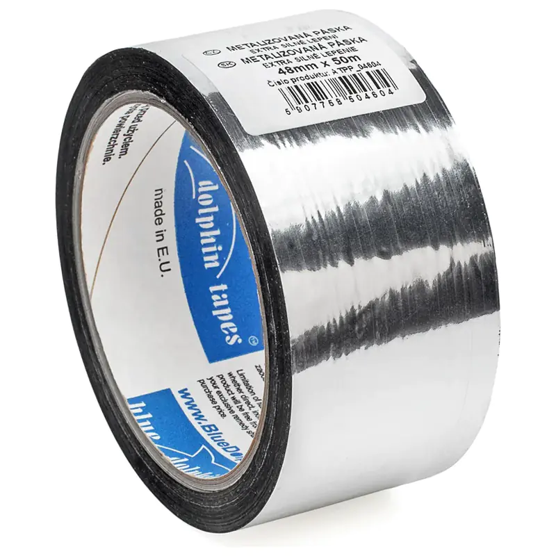 Лента клейкая металлизированная Blue Dolphin - самоклеящаяся лента из полипропилена, покрытая слоем металла. Она используется для соединения изоляционных материалов в системах вентиляции, кондиционирования воздуха и санитарных установках. Ее также можно использовать при изготовлении лаг и трубопроводов. Металлизированная лента характеризуется высокой прочностью и высокой адгезионной прочностью. Длина: 50 м. Ширина 48 мм.