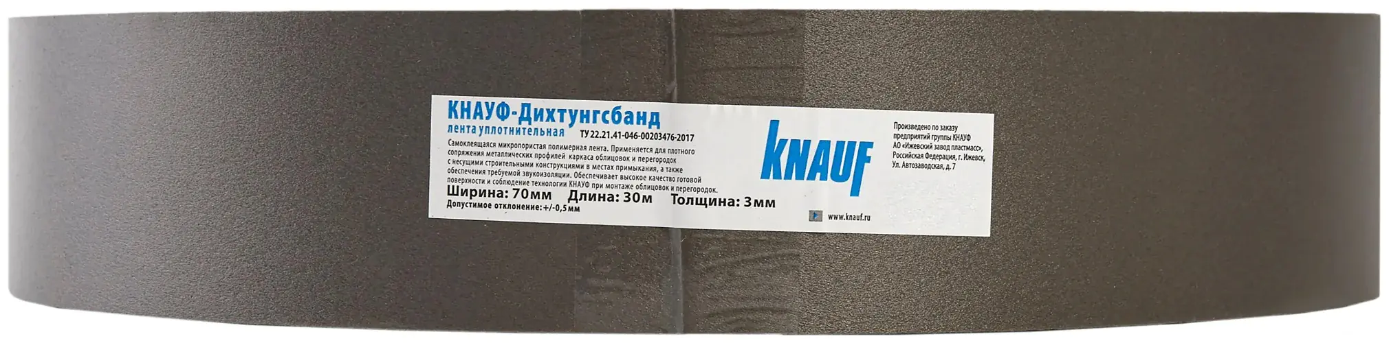 Лента звукоизоляционная KNAUF Дихтунгсбанд клеится на профиль к той стороне, которая будет прилегать к основанию (пол, стена). Заполняя собой неровности, она, таким образом, препятствует возникновению вибраций и проникновению шума. В рулоне 30 м. Ширина 70 мм. Толщина 3 мм. Цена за рулон.