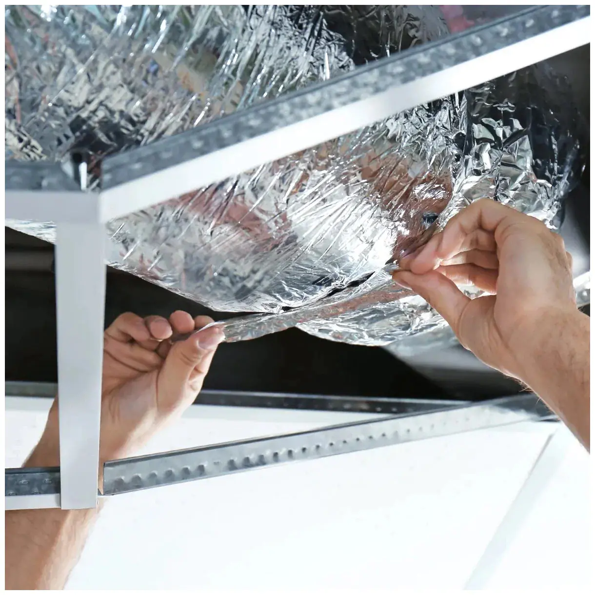 Лента алюминиевая предназначена для крепления пенофола и кровельных плёнок между собой. За счет алюминия отражает тепло, поэтому может применяться для крепления фольги и фольгированных утеплителей.