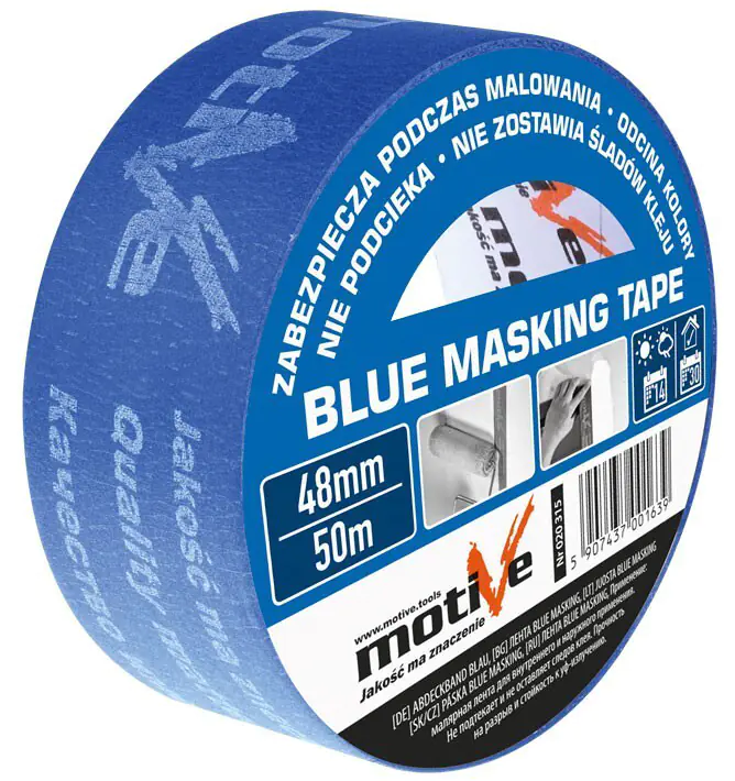 Бумажная малярная лента голубого цвета для внутреннего и наружного применения. Длина 50м. Прочная, стойкая к ультрафиолетовому излучению и температуре до +60 градусов внутри помещений в течение 30 дней, снаружи – в течение 14 дней. Не подтекает при покраске и не оставляет следов клея.