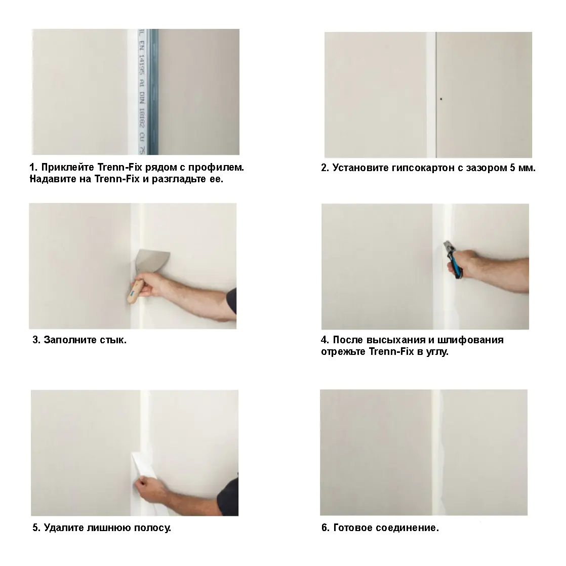 Полимерная самоклеящаяся лента.Предназначена для устройства скользящего примыкания края обшивки из ГКЛ к ограждающим конструкциям. Искусственно созданный направленный разделительный зазор препятствует распространению трещин и нарушению штукатурного и шпаклевочного покрытия. Таким образом, применение ленты на стыке конструкций позволяет получить минимальный и идеально ровный шов.