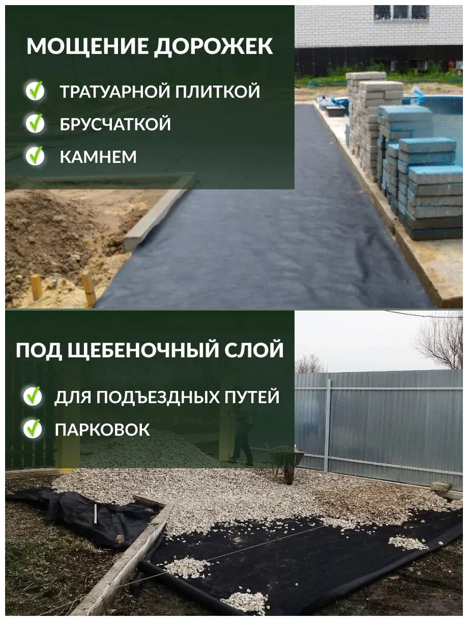 Шикарный материал, по виду смахивает на рубероид. Не тянется. Щебенчатую подсыпку под дорожкой удержит, не даст уплыть. Для садовых дорожек Отличная плотность, даже с запасом