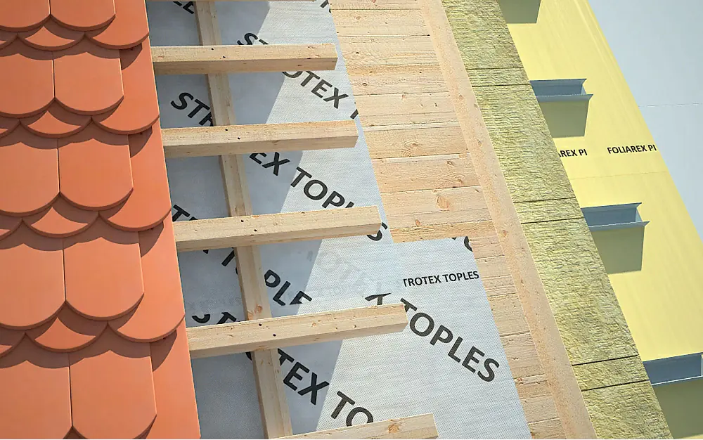 Гидроизоляционные пленки необходимо применять при устройстве скатных крыш с покрытиями не образующими сплошной ковер (все виды черепицы, металлические кровли, шифер). Фактически они являются вторым рубежом защиты от наружной влаги (снег, капли воды, конденсат), которая может проникать под кровельное покрытие.