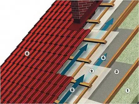 Пленка укладывается параллельно карнизу снизу-вверх с нахлестом, который зависит от степени наклона крыши (но не менее 10см). Рекомендуется полотна между собой склеивать монтажной лентой. Должен выдерживаться минимальный зазор между утеплителем и пленкой в 2 см. Пленка должна укладываться с небольшим провисом, так как слишком большое натяжение может вызвать увеличение микроотверстий, что может привести к попаданию влаги в утеплитель.