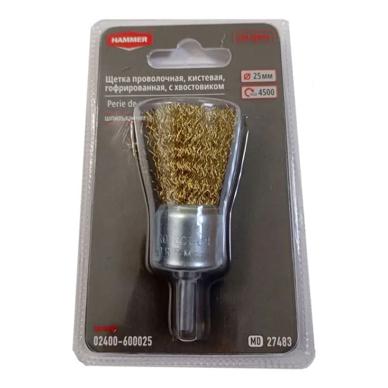 Щетка-крацовка кистевая проволочная гофрированная 25 мм HAMMER 02400-600025 применяется для щадящей очистки поверхностей от ржавчины, грязи, удаления лакокрасочных покрытий, получения заданной шероховатости. Крепится с помощью хвостовика. Шпилька 6 мм.