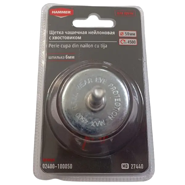 Щетка-крацовка нейлоновая 50 мм HAMMER 02400-100050 предназначена для полировки дерева/металла. Крепится с помощью хвостовика. Проволока нейлоновая (диаметр 0,33 мм). Шпилька 6 мм.