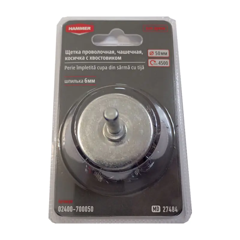 Щетка-крацовка чашечная проволочная косичка 50 мм HAMMER 02400-700050 применяется для щадящей очистки поверхностей от ржавчины, грязи, удаления лакокрасочных покрытий, получения заданной шероховатости. Крепится с помощью хвостовика. Шпилька 6 мм.
