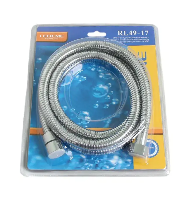 Душевой шланг Ledeme RL49 170 см хромированный с двойным замком. Нержавеющая оплетка 304, внутренняя труба EPDM, поддерживает высокое давление. Цвет серебряный.