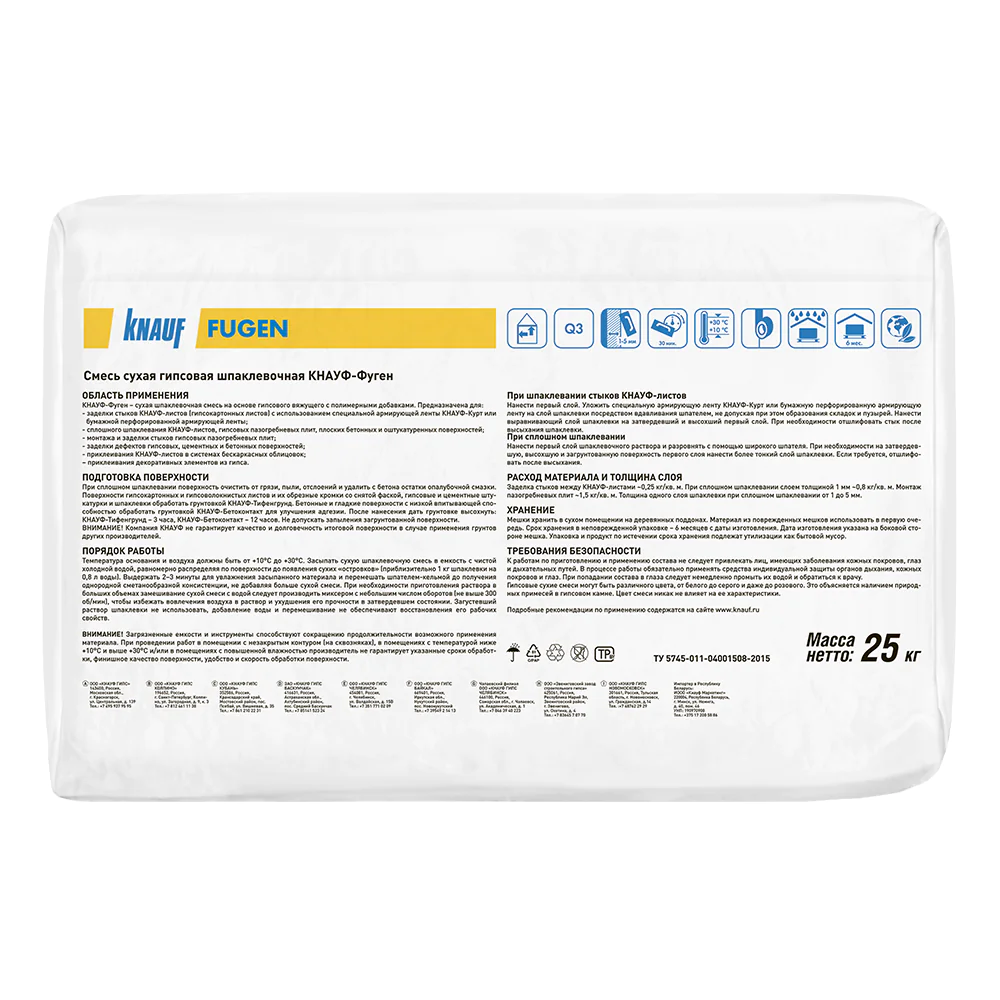 Шпатлёвка гипсовая КНАУФ-Фуген разработана специально для заделки стыков гипсокартонных КНАУФ-листов (ГКЛ).